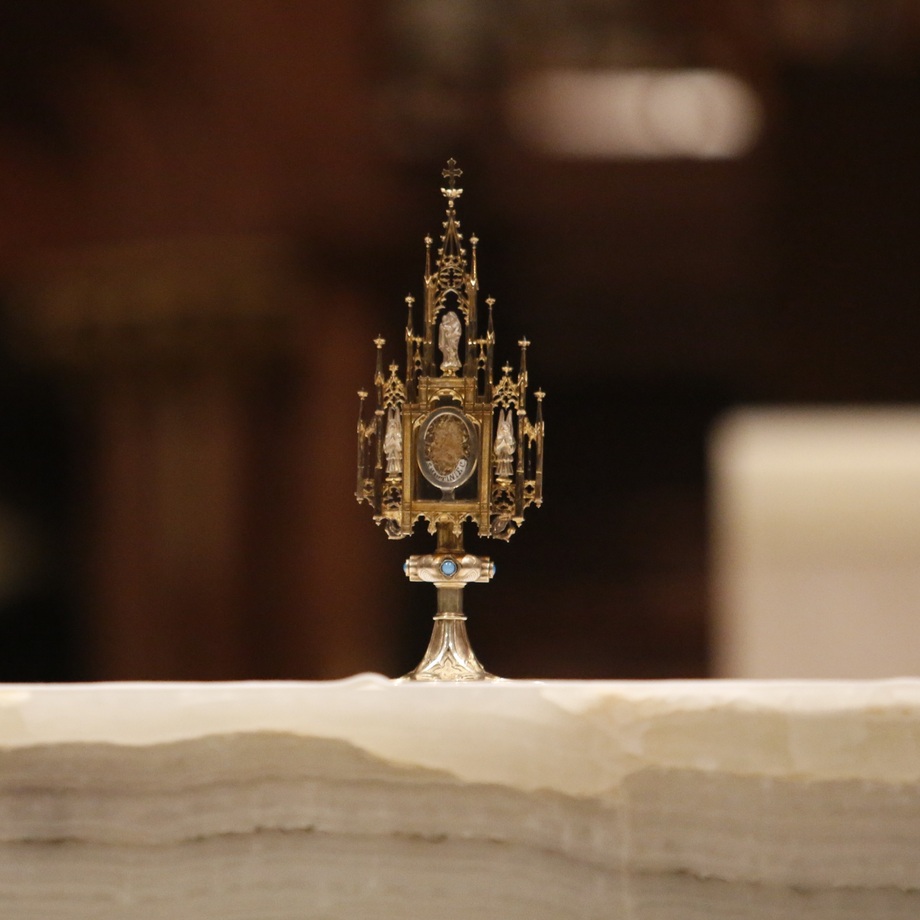 A Pannonhalmi Főapátság féltve őrzött ereklyéi közül dr. Várszegi Asztrik emeritus főapát úr mutat be néhány különleges darabot a nagyközönségnek. Szent Márton ereklyetartója stílusában is igazodik a John Pawson tervei által felújított 800 éves Bazilikához, hiszen ez is ónixból készült a világhírű angol építész műhelyében. Az altemplomban, a Stornó Ferenc tervei alapján készült oltár alatt őrzik. Szent István ereklyéjét, egy csontdarabot egy részben aranyozott ezüst kettős kereszt védi. A kereszt 2006-ban készült, Varga Péter műve. Szent Benedek ereklyetartóját maga Asztrik főapát úr hozta Montecassinóból, a Szent Asztrik-ereklyetartó pedig egyenesen az ő számára készült a Münsterschwarzachi Apátságban, 2016-ban. Indulás a főkaputól